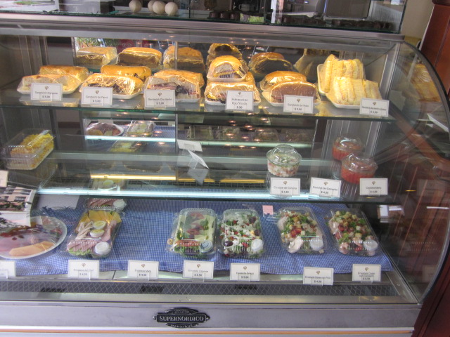 The closest approximation of take-out salads, as North Americans and Europeans know them, is at the upscale Gourmet Deli at the Hotel Oro Verde on Ordonez Lasso. Plan on spending $5-$6, not including something to drink; it’s a quiet place to be if you plan to eat your salad there. Another place I find to be reliable is the Spanish deli chain La Espanola at Mall del Rio (also in Guayaquil and Quito). The servers behind the counter will create the salad to your specifications, i.e. without meat (all their meat is processed), without cheese, etc., and serve you Spanish olive oil and lemon on the side. See photo below; the white items on the left are mushrooms which they substituted for meat or poultry.