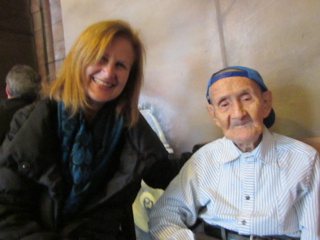 When it was time for my British friend to leave and meet up with other friends, an elderly man walked in, accompanied by his family. The family seated him on a bench about 2’ from me. Oh my. I had the biggest smile on my face watching him and listening – his conversation was sharp and clear, his appetite impressive, his cheerful demeanor inviting. It was meant to be, we met up.